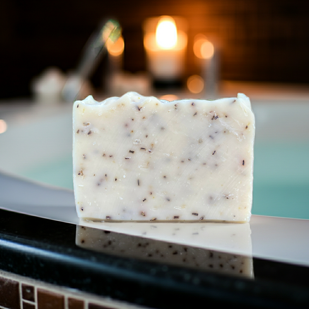 Handcrafted with a creamy goat’s milk base, each bar produces a rich, gentle lather that cleanses without stripping moisture, leaving skin soft, hydrated, and lightly scented with its fresh herbal aroma.
